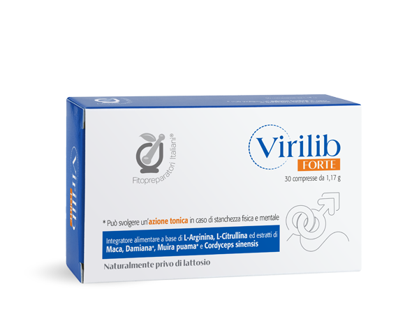 VIRILIB FORTE è un integratore alimentare a base di L-Arginina, L-Citrullina ed estratti di Maca, Damiana, Muira puama e Cordyceps sinensis. Damiana e Muira puama risultano utili come tonici in caso di stanchezza fisica e mentale, mentre Maca e Cordyceps sinensis svolgono un’azione tonica e di sostegno metabolico.